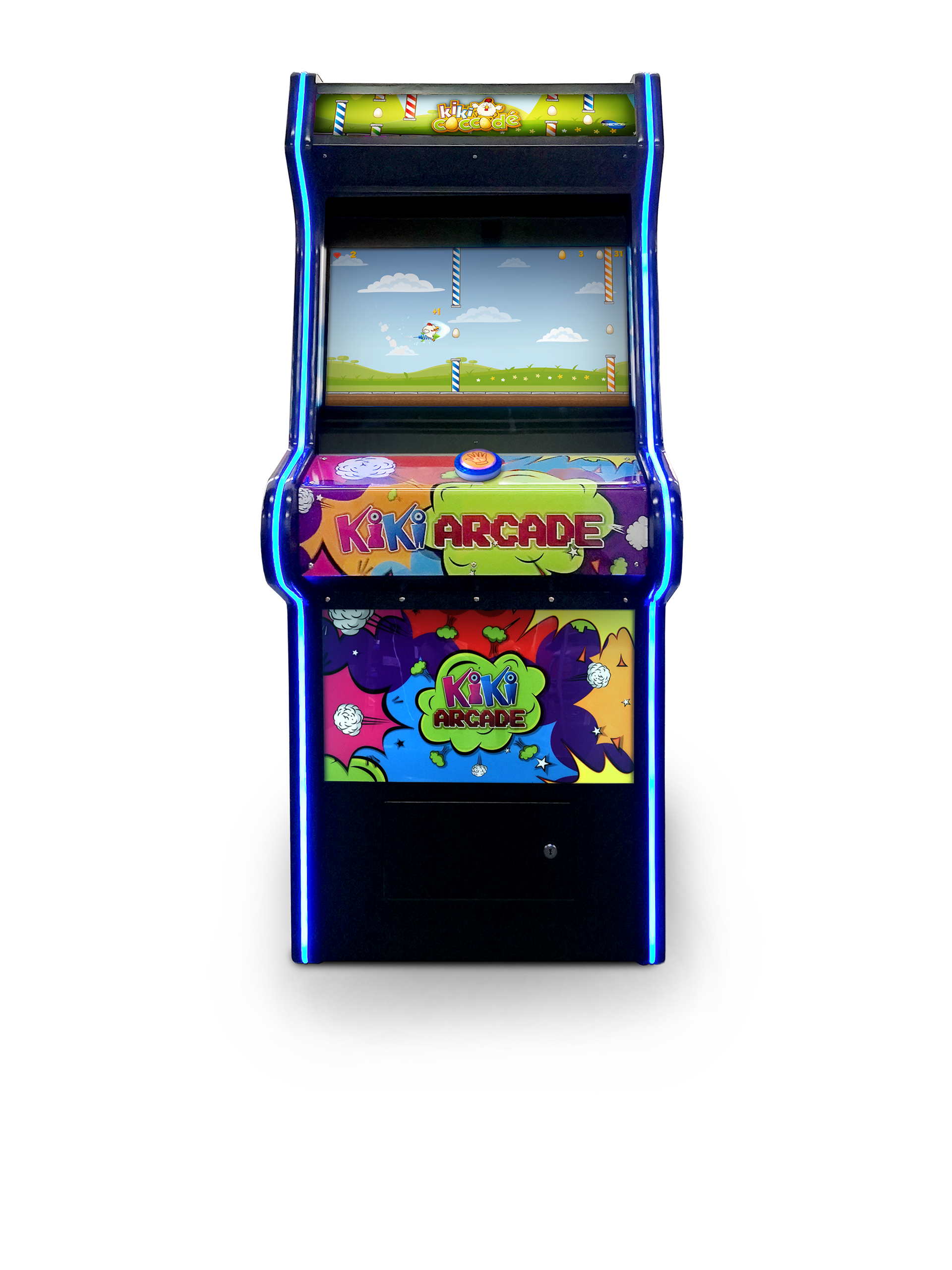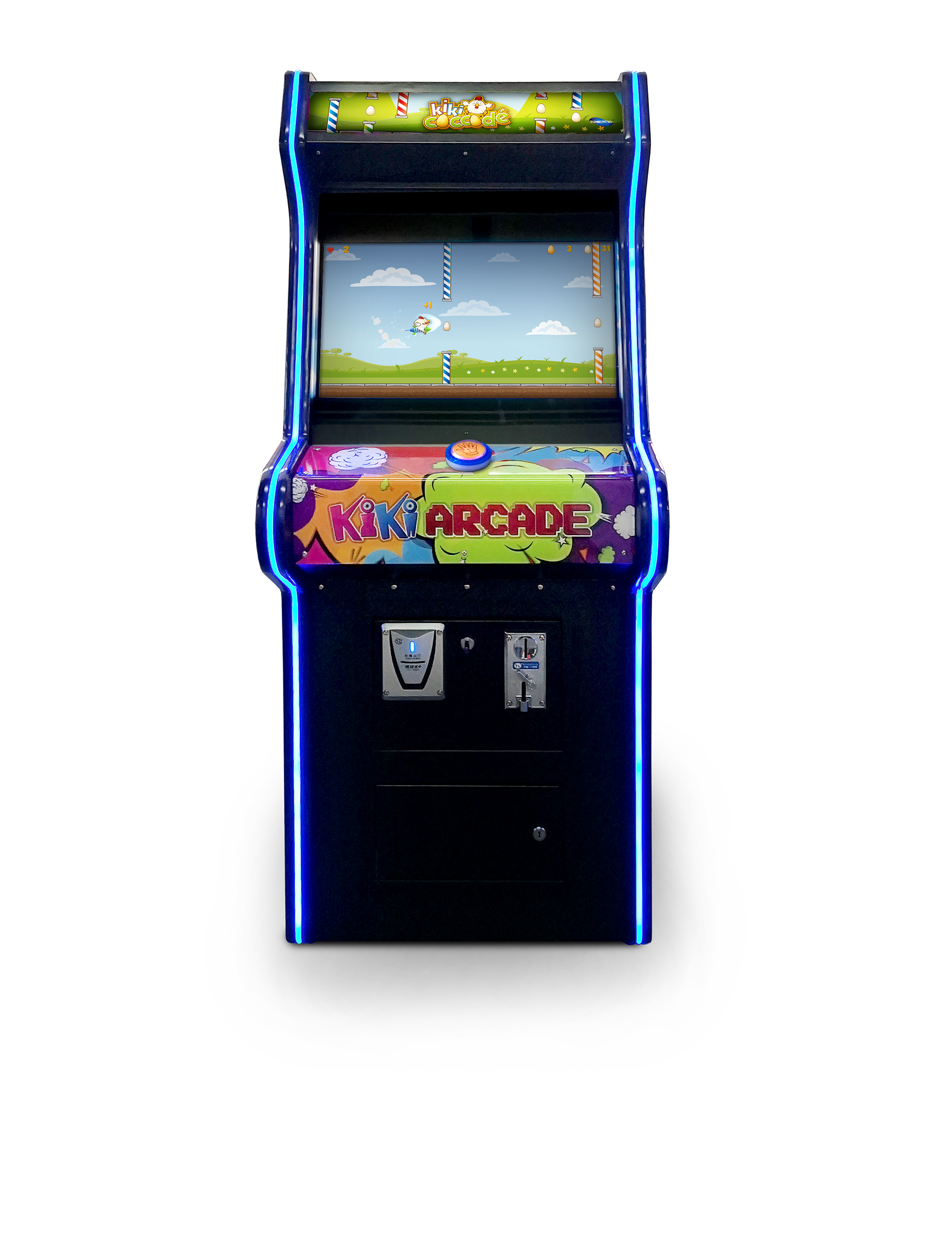 La gallina parte premendo “START”, guidala con il tasto centrale e attraversa gli ostacoli raccogli tutte le uova  quante più uova possibili.